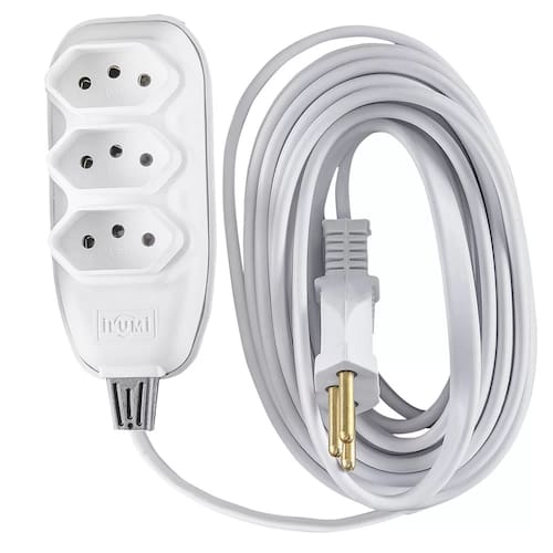 Características Gerais do Produto: • Amperagem: 10A • Comprimento do Cabo: 5mt • Quantidade de Tomadas: 3 tomadas • Tensão (V): 250V • Cor: Branco