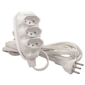 A extensão com 3 tomadas é um dispositivo elétrico projetado para fornecer energia adicional a partir de uma única fonte de energia elétrica. Essa extensão é composta por um cabo longo de 10 metros, terminando em uma extremidade com um plugue que se conecta a uma tomada. Na extremidade oposta, a extensão possui três tomadas elétricas, sendo elas tripolar, permitindo conectar até três dispositivos simultaneamente.