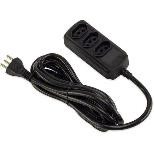 Especificações Marca: Force Line Extensão elétrica 3 tomadas 10A Cabo com 3 metros Tomada 3 pinos 2P + T Cor: Preto Ean: 7899018477583