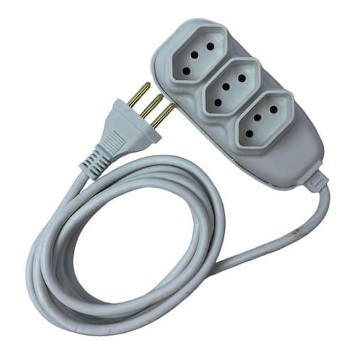 Extensão elétrica tripolar cor branca 2 metros Extensão multiuso tripolar branca - 2 metros