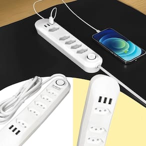 - Multiplicador inteligente: 5 tomadas para eletrodomésticos e eletrônicos + 3 portas USB para recarga rápida de smartphones, tablets e gadgets.