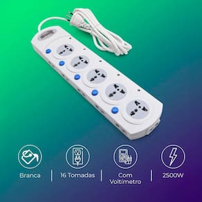 A Extensão de Tomadas de 3m de comprimento é uma solução prática e versátil para conectar seus dispositivos com segurança e eficiência. Com 10 entradas convencionais e 5 universais, ela permite a conexão de diversos aparelhos ao mesmo tempo. O interruptor embutido facilita o controle de energia, enquanto o LED identificador de energia e o identificador de voltagem geral proporcionam segurança adicional, garantindo que seus dispositivos estejam sempre protegidos. Ideal para uso doméstico e profissional.