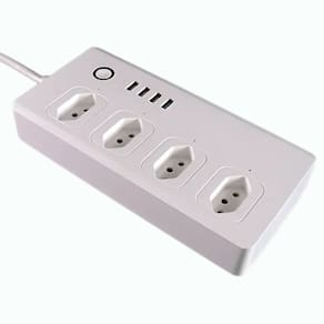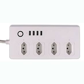 4 tomadas + 4 portas USB (8 dispositivos simultâneos)