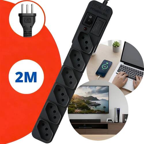 Extensão Régua Filtro De Linha Protetor Energia Elétrica 6 T