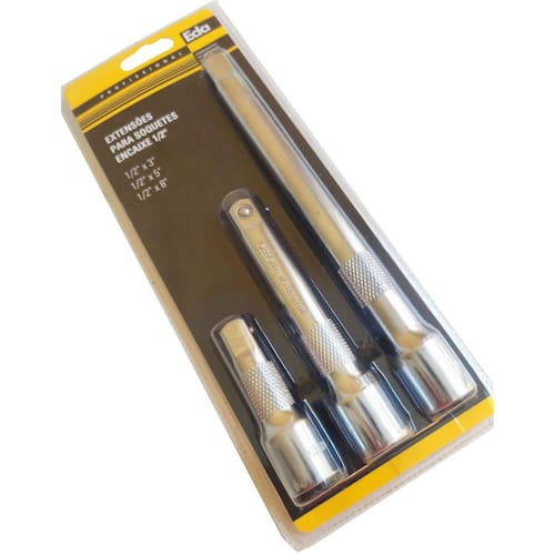 Extensões alongadores para soquetes encaixe 1/2 polegada Descrição do produto - extensões para soquetes encaixe de 1/2'', produto de alta qualidade e durabilidade. - marca: eda - encaixe de 1/2''. - tamanho: 3'', 5'', 8''. - acompanha 3 acessórios para soquetes. - peças extremamente resistentes. - material: aço cromo vanádio. Ideal para alongar soquetes para trabalhos em difícil acesso.