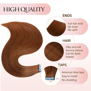 Extensões de cabelo AGMITY Tape em 40 g, 20 unidades, 40 cm, castanho-avermelhado escuro