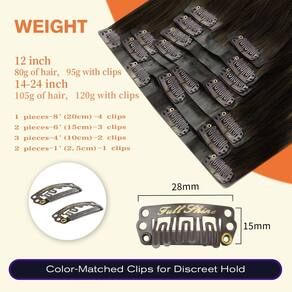 Você está procurando um conjunto perfeito de clipes que sejam 100% invisíveis e discretos e não danifiquem seu cabelo Extensões de cabelo sem costura com clipe de cabelo humano real são os melhores! Estes são o investimento perfeito para uma linda cabeça inteira de cabelo, onde ninguém será capaz de dizer que você está usando extensões de cabelo. É hora de jogar fora aqueles clipes volumosos e trocá-los por clipes invisíveis sem costura Mais cores modernas, balayage, destaques, extensões de cabelo Remy com clipe ombré 1) Invisível e mais leve 2) Tecnologia de fabricação ecológica 3) 100% cabelo humano 4) Tecnologia anti-queda Leia antes de fazer o pedido 1) Diferenças de cor não podem ser evitadas, pois diferentes monitores e luzes mostrarão a cor de forma diferente. O cabelo é um clipe de trama dupla em extensões de cabelo humano, há cabelo curto. 1 conjunto é para volume normal de cabelo, e para cabelos grossos, sugerimos usar 2 pacotes ou adicionar um clipe de 3 peças em extensões. Aceitamos pedidos personalizados. Cuidados e uso Sobre a coloração: o cabelo pode ser colorido. Como regra geral, é mais fácil escurecer o cabelo do que clarear o cabelo. Mas sempre teste uma pequena amostra primeiro. Sobre a lavagem: lave suavemente as extensões de cabelo em água morna, aplique um pouco de xampu sem sulfato, enxágue o xampu e aplique condicionador hidratante. Sobre o pente: Antes e depois do uso, lembre-se de escovar suas extensões de cabelo gentilmente com uma escova de cerdas macias; certifique-se de que todos os nós e emaranhados tenham desaparecido! Desejamos que todos os clientes tenham um bom dia com Full Shine Hair, obrigado! - Macio e suave ao toque: Feito de cabelo humano Remy, as extensões de cabelo sem costura Full Shine têm uma textura suave e sedosa que é macia ao toque; ideal para aqueles que procuram cabelos luxuosos e com aparência natural - Atualize para a trama de poliuretano de borda invisível: a borda externa estreita e a ampla faixa interna de poliuretano garantem um ajuste natural; a trama ultrafina de poliuretano permite um ajuste respirável e leve, garantindo conforto durante todo o dia sem sentir pesado no couro cabeludo - Variedade de comprimentos e pesos: escolha entre extensões de 30,5 cm (95 g), 35,6-56 cm (120 g) para atender às suas necessidades de estilo; cada pacote inclui diferentes larguras de trama para atender a várias partes da sua cabeça, permitindo opções de estilo personalizadas - Aumento de volume sem esforço: adicione volume instantaneamente a cabelos finos ou lisos com apenas um pacote; para aqueles que procuram o volume máximo, 2-3 conjuntos de extensões de clipe podem ser utilizados juntos, oferecendo uma aparência exuberante e volumosa - Suave no couro cabeludo: os clipes de silicone são macios e suaves, evitando irritação ou desconforto; perfeitos para pessoas com couro cabeludo sensível ou cabelos finos; feitos especialmente para misturar com cabelos finos ou finos, oferecendo volume sem causar danos
