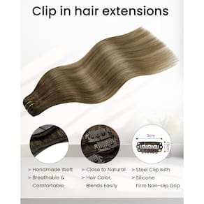 Transforme instantaneamente o seu cabelo com as extensões de cabelo LaaVoo Clip in Hair Real Human Hair! Você está procurando transformar seu penteado sem esforço? Não procure mais, LaaVoo, nossas extensões de cabelo com clipe são ótimas para uso diário, casamentos, festas, cosplay e outras ocasiões. Esperamos trazer a você uma beleza incomparável. As extensões de clipe LaaVoo são feitas de 100% cabelo humano e são mais fáceis de usar, você pode tratá-las como se fosse seu próprio cabelo. Especificações: Marca: LaaVoo Tipo de extensão: Extensões de cabelo com clipe 5 peças. Qualidade: Extensões de cabelo humano 100% Remy. Cor do cabelo: preto sólido, marrom, loiro; balayage, ombre, destaques. Peso do conjunto: 80 g com 12 clipes por conjunto. Dicas: (1) Observação: o cabelo humano é macio por natureza. A vida útil depende muito de como eles são utilizados e cuidados. Xampus/condicionadores inadequados, frequentemente usando ferramentas de aquecimento, tingimento, modelagem pesada podem encurtar a vida útil. Ao contrário do nosso próprio crescimento de cabelo no couro cabeludo, essas extensões de cabelo não conseguem mais obter nutrição e umidade das raízes. (2) Diferenças de cor não podem ser evitadas devido a diferenças entre monitores e luzes. (3) O cabelo é um clipe de trama dupla em extensões de cabelo humano, há cabelo curto nas raízes. Cuidados e uso Sobre a coloração: Nossas extensões de cabelo com clipe só podem ser tingidas em cores mais escuras por processo de tingimento profissional. Mas não sugerimos que você tinga as extensões de cabelo, porque o processo de tingimento não profissional encurtaria a vida útil do cabelo e afetaria o desempenho do cabelo. Sobre o sono Nunca durma com o cabelo molhado. Antes de dormir, certifique-se de que seu cabelo esteja seco e amarre-o. É sempre melhor fazer uma trança solta ou rabo de cavalo ao dormir. AME NOSSO CABELO, APROVEITE SUA VIDA! Desejamos que todos os clientes possam ter um bom dia com um cabelo! - [Adicione volume de cabelo para o mesmo comprimento] Extensões de cabelo com clipe LaaVoo 5 peças - mais adequado para escolher o mesmo comprimento do seu próprio cabelo para aumentar o volume e criar uma aparência natural. 12-22 polegadas: 80 g (70 g de cabelo mais 12 clipes). Se quiser obter um visual mais cheio, é recomendado usar 2-3 pacotes ou emparelhar o clipe em extensões de cabelo com arame ou 7 extensões de clipe, o que criará um conjunto completo pesando até 160-200 g. - [Personagens LaaVoo Clip in Hair Extensions] Extensões LaaVoo com clipe, criadas exclusivamente a partir de cabelo humano real, livre de fibras sintéticas ou pêlos de animais. Para alcançar um efeito natural como nosso próprio cabelo, as pontas do cabelo serão mais finas do que as raízes. Sob o mesmo peso, quanto maior o tamanho do cabelo, mais fino será a sensação das pontas do cabelo. A base das tramas tem cabelos curtos bem trabalhados, firmemente presos com o mínimo de queda. Esta é uma tecnologia de produção normal. - [Manutenção e cuidados] Para garantir a longevidade e durabilidade de suas extensões de cabelo, a manutenção adequada é vital. Evite pentear o calor excessivo, use produtos suaves (manchas ocorrem ao usar xampu roxo) e guarde-os com bolsas de armazenamento de extensões de cabelo quando não estiverem em uso. Não use alvejante nas extensões de cabelo humano LaaVoo Como as extensões de cabelo LaaVoo foram submetidas a tingimento e outros tratamentos, mais branqueamento ou tingimento mais leve danificarão a qualidade do cabelo e encurtarão sua vida útil. - [Conheça LaaVoo variedade de cores em extensões de cabelo humano] LaaVoo Clip in Hair Extensions oferece uma variedade de cores populares, incluindo preto sólido, marrom, loiro e balayage, ombre, destaque, que pode combinar bem com o seu próprio cabelo. Pequenas dicas: Haverá diferenças de cor entre diferentes monitores e luzes, recomenda-se que a escolha da cor dependa das raízes do seu próprio cabelo. - [Embalagem atualizada e clipes de substituição] Cada pacote de extensões de cabelo LaaVoo Clip in Hair contém dois clipes de substituição no futuro. Como ainda está atualizando, o que você recebe pode ser especificações antigas ou novas aleatórias. A embalagem dos clipes de extensões de cabelo LaaVoo é completa e limpa, com adesivos de vedação não rasgados. Para evitar receber produtos de revenda, retire a caixa após o uso do produto.