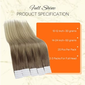 Extensões de cabelo com fita adesiva são um tipo popular de extensão de cabelo feito de cabelo humano. Estes tipos de extensões de cabelo são versáteis e podem ser utilizados para uma variedade de diferentes opções de estilo. Se você está procurando uma maneira de adicionar comprimento ou volume ao seu cabelo, as extensões de cabelo com fita de brilho total podem ser sua solução. Um dos benefícios de usar extensões de cabelo com fita adesiva é que elas são fáceis de aplicar. Ao contrário de outros tipos de extensões de cabelo que exigem ferramentas ou equipamentos especializados, tudo o que você precisa para aplicar fita adesiva em extensões de cabelo é uma fita adesiva simples. Isso significa que você pode aplicar essas extensões facilmente em casa sem precisar visitar um estilista . Outro benefício da fita de brilho total nas extensões de cabelo é que elas parecem incrivelmente naturais. Como eles são feitos de cabelo humano real, eles se misturam perfeitamente com o seu cabelo existente. Isso significa que ninguém será capaz de dizer que você está usando extensões a menos que você decida dizê-las! Eles são macios, sedosos e brilhantes - assim como seu cabelo natural. Eles podem durar vários meses se forem cuidados adequadamente. Primeiro, é importante evitar produtos de cabelo à base de óleo ou silicone, pois eles podem enfraquecer o adesivo segurando as extensões no lugar. Lavar as extensões no máximo três vezes por semana pode ajudá-las a durar mais tempo, mas é crucial usar apenas xampu e condicionador sem sulfato. Para evitar possíveis danos, tente não ir para a cama com o cabelo molhado e sempre escove as extensões suavemente de baixo para cima usando uma escova especial projetada para extensões. Para evitar emaranhados, separe as extensões de cabelo e remova suavemente todos os nós todas as manhãs e noites. Sempre certifique-se de visitar um cabeleireiro para aplicação e remoção da fita em extensões para evitar qualquer dano ao seu cabelo natural. No geral, as extensões de cabelo com brilho total são uma opção para qualquer pessoa que queira adicionar comprimento, volume ou espessura ao seu cabelo! - Aparência natural: os pontos de fita nas extensões de cabelo são a aparência natural. Extensões de fita imitam o fluxo natural do cabelo, elas se misturam perfeitamente no cabelo do usuário e podem até ser usadas em uma variedade de penteados sem revelar os laços - Leve e confortável: as extensões de cabelo com fita adesiva são leves e confortáveis de usar, tornando-as fáceis de usar por longos períodos de tempo. Fita de brilho total em extensões, não pesa o couro cabeludo. Este nível de conforto os torna ideais para qualquer pessoa - Reutilização: a reutilização das extensões de fita aumenta o seu apelo. As extensões de fita podem ser facilmente removidas, limpas e depois reaplicadas. Oferecemos 6 fitas e recomendamos substituir a fita por uma nova a cada 4 a 6 semanas - Adesivo forte: nossas extensões de cabelo são feitas com fita dupla face para um forte e confiável. Ao usar extensões de cabelo, alinhe as duas peças de extensões de cabelo, e não deve haver muito cabelo no meio para evitar queda de cabelo - Fácil manutenção: ao contrário de outros métodos de extensão, as extensões de fita exigem manutenção mínima. Você pode lavar, secar com secador, alisar e enrolar o cabelo como você normalmente gostaria do seu cabelo natural, reduzindo quaisquer rotinas de cuidados adicionais ou produtos - Cabelo humano real: as extensões de cabelo com fita de brilho total são feitas de cabelo humano real, sem cabelo sintético ou cabelo animal. Suas cutículas são mantidas intactas e não descascadas. Nossas extensões de fita adesiva não apenas parecem reais e saudáveis, mas também parecem reais e livres de emaranhados - Aumento de espessura: se você está lidando com cabelos finos ou finos, nossas extensões de cabelo com fita adesiva são sua solução. Eles adicionam volume e comprimento instantaneamente ao seu cabelo, dando a você uma aparência completa e volumosa - Danos mínimos: as extensões de cabelo com fita de brilho total não são prejudiciais. Isso é particularmente importante para aqueles que têm cabelos finos ou finos e querem evitar qualquer quebra ou dano adicional do cabelo - : nossas extensões de cabelo com fita adesiva estão disponíveis em uma ampla variedade de cores. Se você deseja extensões que combinem com a cor do seu cabelo para um visual natural ou você está procurando adicionar um toque de cor para um novo estilo ousado, nós temos o que você precisa