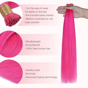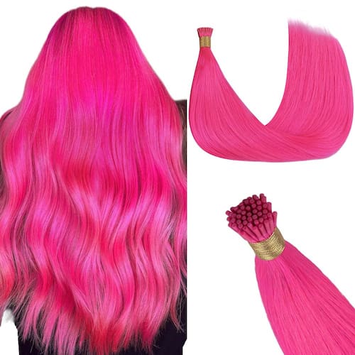GOO GOO Extensões de cabelo coloridas I Tip, cabelo humano real, 45,7 cm 50 g, 50S, Cold Fusion I Tip, Remy invisível, rosa choque