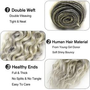 - ?Material dos mechas de cabelo humano cinza/613?Cabelo humano virgem brasileiro 100% não processado. Macio e sedoso. Parece muito natural, assim como seu próprio cabelo.