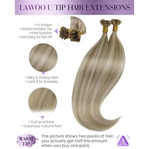 As extensões de cabelo LaaVoo U Tip são feitas com cabelo humano Remy, dando a você a escolha mais adequada. Os termos extensão de cabelo ponta U/ponta de unha são frequentemente utilizados para descrever a mesma coisa, que é simplesmente uma maneira de descrever a forma da queratina no final de cada fio. A queratina é moldada em forma de "u" ou "unhas" para tornar rápida e fácil derreter contra o cabelo para formar uma ligação selada. Sem danos ao seu próprio cabelo! Especificações: Marca: LaaVoo Tipo de extensão: Extensões de cabelo em U Material: Cabelo humano Remy Quantidade: 1 g/fio, 50 g/pacote Como aplicar 1. Primeira seção de cabelo (sempre corte o cabelo de baixo para cima) 2. Insira o separador na raiz para proteger seu couro cabeludo do calor 3. Puxe o cabelo através do orifício do separador torcendo vários pelos e depois puxando-os 4. Coloque a extensão de ponta em U pré-colada sob o seu próprio cabelo 5. Coloque a varinha de fusão sob o cabelo. 6. Feche a varinha de fusão por vários segundos, derretendo e espalhando a cola em cada cabelo. 7. Assim que a cola derreter, enrole a cola entre os dedos até que a cola fique cilíndrica segurando a extensão no lugar. AME NOSSO CABELO, APROVEITE SUA VIDA! - Cabelo real; liso e saudável: as extensões de cabelo LaaVoo U Tip são feitas de cabelo humano puro e real que se mistura com o seu próprio cabelo. Elas são resistentes ao calor e duráveis, mais suaves e brilhantes, dando a você um cabelo bonito e saudável - Material de queratina italiana segura: as extensões de cabelo humano LaaVoo Ktip são feitas de queratina italiana, inofensivas para o cabelo e couro cabeludo. Método exclusivo de fixação da ponta em forma de U que facilita a fixação e remoção - Especificações: As extensões de cabelo humano real da LaaVoo K Tip contêm vários designs de comprimento, variando de 35,5 cm a 61 cm, e cada pacote pesa 50 gramas. 2 pacotes para adicionar destaque, 3-4 pacotes de extensões para adicionar espessura - Vantagens do método de uso: Instalação de 3,8 a 5 cm de distância do couro cabeludo. O método de fixação Utip garante uma mistura perfeita entre o cabelo natural e as extensões de cabelo, criando uma aparência natural e indetectável - Cor da moda: As extensões de cabelo humano com ponta em U da LaaVoo incluem várias opções de cor de cabelo. Você pode misturar e combinar cores à vontade para criar suas próprias extensões de cabelo exclusivas