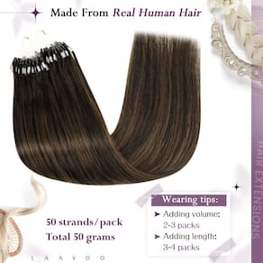 Se você está procurando extensões de cabelo remy remy, mas está preocupado com os danos que elas podem causar ao seu cabelo, as extensões de cabelo LaaVoo Micro Ring são a solução ideal para suas necessidades. A extensão de cabelo com microanel é um dos métodos mais versáteis, pois é adequada para a maioria dos tipos de cabelo. Além disso, o método de microanel não envolve calor ou cola, é considerado uma das formas mais seguras de extensões de cabelo atualmente disponíveis no mercado. Especificações: Marca: LaaVoo Tipo de extensão: Extensões de cabelo micro anel Qualidade: Cabelo humano Remy Quantidade: 1 g/fio, 50 g/conjunto Como aplicar 1. Lave e seque o cabelo completamente antes de começar. 2. Separe o cabelo a cerca de 2,5 cm da nuca do seu pescoço. 3. Pegue um fio do seu próprio cabelo, coloque-o através do laço e puxe a parte inferior do laço que fica sob a miçanga. 4. Prenda os anéis com alicates. (Você precisa apertá-los firmemente o suficiente para evitar que deslizem). 5. Deixe outra largura de dedos entre cada extensão. Com cada nova camada, você estará construindo as extensões. Dicas quentes 1. Evite piscinas. 2. Escove o cabelo regularmente. 3. Amarre seu cabelo em uma trança solta enquanto você dorme novamente para diminuir o emaranhado. - Cabelo humano real: As extensões de cabelo humano LaaVoo Microlink são totalmente coletadas de doadores saudáveis e exatamente como seu próprio cabelo. O corpo ficará ligeiramente ondulado após a lavagem. mas se misturará naturalmente com o seu cabelo quando estiver seco - Vantagens das extensões de cabelo de microcontas: As extensões de cabelo LaaVoo Micro Link são cabelos com ponta de fusão fria, sem calor, sem cola. A cor das contas é semelhante à cor do cabelo, escondida perfeitamente dentro do seu próprio cabelo - Especificação: Tamanho: 35,5-61 cm; Peso: 1 g/fio, 50 g/pacote. Se você precisar adicionar comprimento e volume, recomendamos 3-4 pacotes e 1-2 pacotes de extensões de cabelo LaaVoo Microbead para adicionar destaques - Cor da moda: As extensões de cabelo humano LaaVoo Micro Link incluem mais do que várias opções de cor de cabelo. Você pode misturar e combinar cores à vontade para criar suas próprias extensões de cabelo exclusivas - Dicas: Recomenda-se a instalação por cabeleireiro profissional, caso contrário, é mais provável que cause problemas para instalar por conta própria