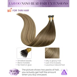 - Sem emaranhamento sem queda: As extensões de cabelo LaaVoo Nano Bead são feitas de cabelo humano real, saudável, macio, brilhante e gerenciável. Pode ser lavado, alisado e enrolado como seu próprio cabelo. 1 g/fio, 50 g por pacote, 2-3 pacotes são suficientes para uma cabeça inteira