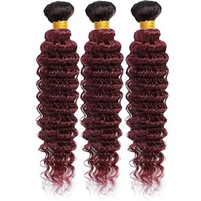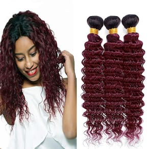 2: Pacote de cabelo: Cabelo humano ondulado profundo bordô 3 mechas em um pacote.