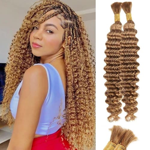 Extensões de cabelo humano Boho Braids Blonde — Deep Water Wave, 27 encaracoladas, 18 polegadas, 100 g, sem trama, 2 tranças por pacote, úmidas e onduladas