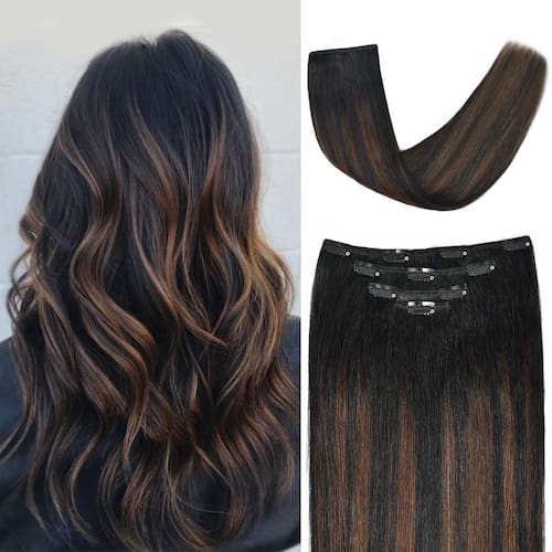Extensões de cabelo real com clipe balayage preto liso e sedoso - ?Especificação de extensões de cabelo humano real?Extensões de cabelo humano com clipe Winsky para cabelo humano, 30,5 e 35,6 cm para um total de 58 g, 40,6 cm para um total de 63 g, 45,7 cm para um total de 68 g, 50,8 cm para um total de 98 g. De acordo com o volume do seu próprio cabelo, apenas para engrossar o seu cabelo, aconselhamos comprar 1 a 2 conjuntos; queira ficar de cabeça inteira, recomenda-se comprar 2 a 3 conjuntos. - ?Fácil, rápido e confortável de usar por muito tempo? 4 peças por pacote, o mais fácil e o mais rápido de colocar, 5 minutos (aprox. ), e adequado para uso diário, casamentos, festas, encontros, etc. As extensões de cabelo Winsky sem costura são feitas com cabelo humano virgem de alta qualidade, macio como seu próprio cabelo natural, pode durar de 3 a 4 meses com bom cuidado. - ?Extensões de cabelo humano com clipe para correspondência de cores?As extensões de clipe Winsky podem ser anexadas Winsky qualquer comprimento de cabelo, misturando-se facilmente com a cor natural do seu cabelo. Observação: a cor clara pode ser tingida para mais escura, mas a cor mais escura não pode ser tingida à luz. (A cor exata pode ser diferente devido aos monitores, se tiver alguma dúvida) - ?Clip-in cabelo humano reestilizado e dicas de lavagem?As extensões de cabelo humano Winsky podem ser reestilizadas, reforçadas, enroladas, tingidas, etc. (Quando você os remodelar, controle a temperatura abaixo de 250F.) Cuidados adequados para manter sua suavidade e brilho, para mais detalhes de lavagem e cuidados, consulte nossas instruções de cuidados com o cabelo na embalagem. - ?Atendimento ao cliente e suporte Winsky ?Sua satisfação é nossa prioridade, oferecemos um serviço de troca e devolução. Sinta-se à vontade para nós se tiver algum problema com a compra de extensões de cabelo humano. Além disso, fornecemos suporte de correspondência de cores, basta nos enviar sua imagem de cor de cabelo natural e ajudaremos você a fazer a escolha certa.