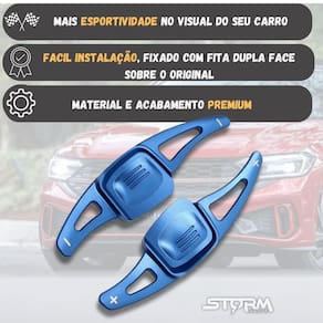 Extensor Borboleta Volante Azul Golf Jetta Polo Virtus tsi Cor: Azul Esse Produto é compatível com os veículos abaixo: - Jetta TSI 2015 em diante - Jetta GLI 2022 em diante Não serve no GLI 2019 a 2021 - Golf TSI MK7 2014 em diante - não é compatível com o GTI - Novo Polo 2017 em diante - Virtus todos os anos - Nivus todos os anos - Passat TSI 2015 em diante - Amarock 2017 em diante - T-Cross todos os anos - Nova Tiguan 1.4 TSI 2018 em diante - não compatível com a versão R-line - Taos todos os anos OBS: Para outros modelos com volante aos das fotos do anuncio favor nos consultar para verificar compatibilidade. Mais detalhes do Produto: Produto totalmente plug and play, instalação sem necessidade de adaptação e de fácil instalação. Valor do anuncio é referente ao PAR Lado Esquerdo botão - e Lado Direito botão + - Material: Liga de alumínio leve e resistente - Instalação: Fixado com fita dupla face de alta resistência acompanha o produto . - Cor: Azul - Pintura especial de alta resistência, não desbota com o tempo. - de 6 meses. Ainda está com alguma dúvida Aqui são algumas das principais perguntas: P. Necessita adaptação para instalar P. Acusa algum erro no painel do carro R. Não, produto totalmente compatível com os modelos listados na lista de compatibilidade. P. Tem R. Sim, produto com de 6 Meses. P. Anuncio é referente a uma unidade o par R. Anuncio referente ao par Lado direito + Lado esquerdo P. Qual a condição do produto R. Vendemos somente produtos novos e lacrados Ainda com alguma duvida que não foi respondida acima Fique a vontade para entrar em contato conosco, nossa equipe técnica está de prontidão para lhe ajudar. Quem Somos: Somos a Storm Parts, trabalhamos com peças automotivas com de alta qualidade, queremos que você e seu carro tenham a melhor experiência, por isso selecionamos cuidadosamente todos nossos produtos, aqui você encontra as melhores opções com qualidade, confiança a um preço justo. Tenha tranquilidade de comprar com quem está disposto a oferecer o melhor atendimento, caso precise de ajuda antes ou após a compra, conte com a nossa equipe de atendimento para lhe ajudar. Marca: Não Informado