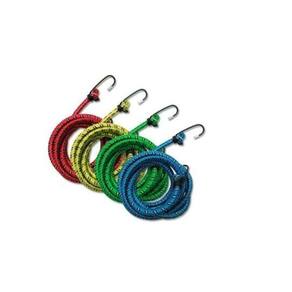 Material: aço carbono, borracha revestida. Cor: vermelho, verde e amarelo. Tipo de embalagem: saco plástico. Ideal para: prender objetos em motos. Bicicletas. Automóveis. Carrinhos de mão. Quantidade: 4 unidades de 2 metros/cada