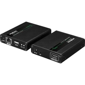 Transmissão de Longa Distância: Estende sinais de vídeo (HDMI) e dados (mouse e teclado) a até 60 metros com cabo Cat6 e 50 metros com Cat5e, superando as limitações de cabos HDMI padrão.