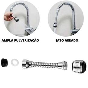 Extensor torneira 360 adaptador flexível cozinha banheiro Extensor alongador adaptador de torneira flexível 360 - chuveirinho ou direcionada banheiro cozinha Transforma sua torneira comum em um pulverizador flexível de alcance estendido sem uso das mãos. O jato e spray de dupla função facilitam a limpeza de objetos de difícil acesso e enxágue de toda a pia. Ótimo para enxaguar frutas e legumes, encher recipientes altos e muito mais. Fornece movimento 360º, se conecta facilmente sem uso de ferramentas e se encaixa na maioria das torneiras de tamanho padrão. Perfeito para cozinhas, banheiros e lavatórios. Se encaixa na maioria das torneiras padrão e é instalada facilmente sem necessidade de ferramentas. - anti respingo. - reduz o tempo de enxágue pela metade, gerando economia de água. - possuí 2 tipos de jato: modo jato e modo chuveiro - acabamento em aço inox cromado - totalmente flexível, o extensor permite uma rotação em 360º Contem um adaptador de torneira giratório difusor bico aerador 360 Ficha técnica: - peso: 100g - medidas: 16cm x 3cm - diâmetro de encaixe na torneira: de 22mm à 24mm - diâmetro de saída: 30mm Qualquer dúvida adicional estamos à disposição, Excelência em qualidade e atendimento ao cliente Marca: Miami Secret