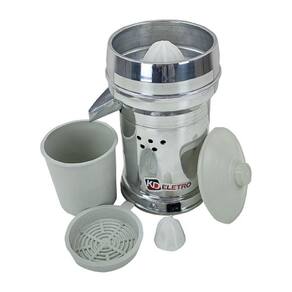 Informações técnicas: Marca: kd eletro Cor: alumínio Indicado para: extrair suco de laranja e limão Material - corpo: alumínio Alimentação - voltagem: bivolt manual chave seletora embaixo do motor Potência: 500 wats 1/2 hp Frequencia: 50/ 60 ghz Rotação: 3.545 rpm. Dimensões do produto: Altura: 33.4 cm Largura: 21 cm Profundidade: 18 cm Peso: 3.800 kg Itens inclusos: 01 copo suco em pp 500 ml 01 peneira para copo em pp 01 castanha pequena em poliestireno limão 01 castanha grande em poliestireno laranja 01 cúpula com bica 01 tampa em plástico branco pp 01 manual de instruções em português.