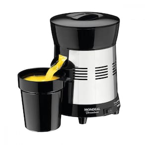Prepare sucos e refrescos saborosos com este extrator Mondial. Ele possui uma potência de 250W, garantindo máxima extração do suco, juntamente com o seu motor com duplo rolamento. Aproveite a jarra, que tem acabamento em aço inox, além do copo com peneira que deixa tudo mais fácil. Prático, este extrator conta ainda com duas castanhas, além de um porta-frios.