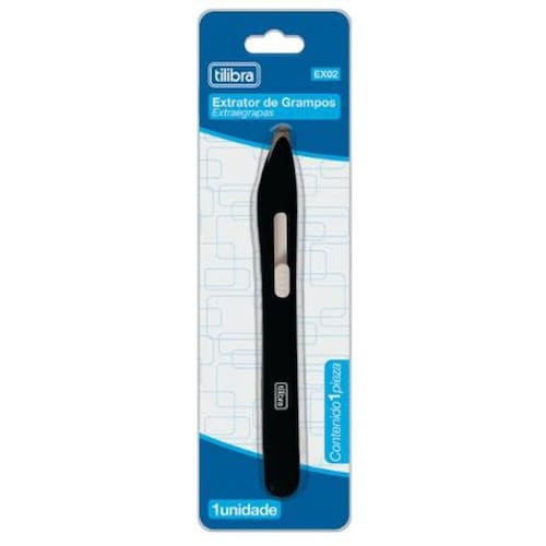 Extrator de Grampo Espátula EX02 O Extrator de Grampos Espátula Preto é resistente e facilita a remoção de grampos de uma folha de papel. Alta qualidade Maior resistência e durabilidade Fácil para manusear Conteúdo: 1 Unidade Peso: 0,022 Kg Dimensões: 1,50x13,30x1,80