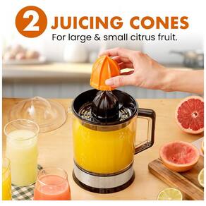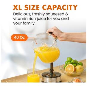 Comece o seu dia com um copo de suco de laranja fresquinho feito na hora! O Extrator de Suco de Citrus Elite Gourmet produz suco de citros perfeitamente espremido, com filtro de polpa e sementes, resultando em três xícaras de suco com a quantidade ideal de polpa, sem sementes. Fácil de desmontar e limpar, este extrator é eficiente e opera com apenas 40 watts. SAUDÁVEL E FÁCIL DE USAR: Extraia o suco diretamente das frutas cítricas, sem aditivos, açúcar extra ou conservantes, preservando as vitaminas, enzimas e nutrientes naturais. TAMANHO IDEAL: Com capacidade para 1,2 litros, é perfeito para 45 porções de suco fresco e saudável, com um bico de despejo conveniente e alça integrada ao recipiente de extração, que conta com um coletor de polpa/sementes. Todas as partes removíveis são seguras para lavar na lava-louças. COMPACTO E LEVE: Uma adição prática para qualquer apartamento, cozinha pequena, vida universitária ou viagens em trailers, ocupando pouco espaço no balcão. FÁCIL DE USAR: O extrator elétrico de movimento automático torna o processo de extração rápido e simples. Basta pressionar para extrair o suco e soltar para parar! SEGURO E AMBIENTALMENTE AMIGÁVEL: Feito com materiais ecológicos, respeitando as normas da FDA e sem plástico BPA. APROVADO PELA ETL FDA. Cor: Preto/Aço Inoxidável.