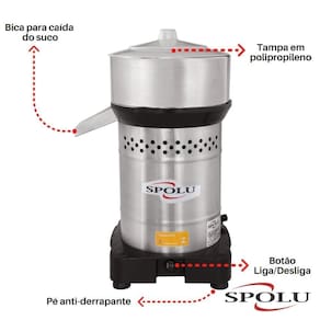 Extrator de Suco Inox Spolu. Espremedor de frutas de alta performance e de altíssima qualidade, seu gabinete em inox e câmara de líquidos em alumínio, excelente para extrair sucos de laranjas e limões de um jeito prático e muito eficaz. Além disso ele vem equipado com Jarra/peneira e duas castanhas, uma para cada fruta (limão e laranja). O espremedor de suco Spolu mostra a diferença em extrair o suco da fruta e espremer a fruta. Peças facilmente desmontáveis, simplificando o processo de higienização. Produto com certificação do Inmetro. POTÊNCIA: 400 W. TENSÃO: BIVOLT. CONSUMO KW/h 0,30. ROTAÇÃO: 1740 rpm. DIMENSÕES EXTERNAS (CxAxL): 21,5x39,5x18,5cm. PESO 5,3kg. Extrator de suco INOX Bivolt Spolu é na Atau.