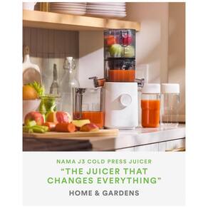Extrator de suco compacto Nama J3 Cold Press, ideal para frutas e vegetais, portátil, com alimentador automático, velocidade de prensagem lenta para preservar nutrientes, motor de 130W silencioso a 50 RPM.Motor c/ dupla rotação