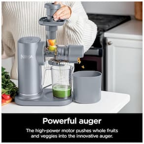 Extrator de suco cold press, controle de polpa, suqueira contínua, programas de um toque, base de motor potente, montagem e limpeza fáceis, alavanca antirrespingo.Motor c/ dupla rotação