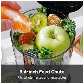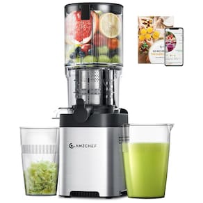 Com o Extrator de Sucos AMZCHEF Cold Press, você terá uma experiência única na preparação de sucos frescos e saudáveis. Sua boca de alimentação larga de 13,71 cm permite que você insira frutas e vegetais inteiros, sem a necessidade de pré-corte. Graças ao mecanismo de corte automático poderoso com lâminas duplas de trituração, seus ingredientes são fatiados e sucos rapidamente, poupando tempo e maximizando cada gota de suco. A avançada tecnologia de extração lenta e a baixa rotação de 60 RPM reduzem obstruções e sedimentação, permitindo a separação perfeita do bagaço do suco, proporcionando um suco puro e natural a cada uso. O maior êmbolo do equipamento aplica alta pressão em baixa velocidade, garantindo a extração de até a última gota de suco. Construído com aço inoxidável durável, o juicer elétrico é projetado para durabilidade e facilidade de limpeza. Não se preocupe com superaquecimento, pois as aberturas de ventilação laterais estrategicamente posicionadas ajudam a prevenir esse problema. Fácil de montar e limpar, com design de uma peça e apenas 3 componentes para montar. A limpeza é rápida e simples, basta desmontar o corpo e usar a escova especial incluída. Para melhores resultados, mantenha a tampa aberta ao montar ou remover a boca de alimentação.