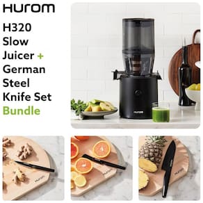 Extrator de sucos a frio com tremonha autocomedora, conjunto de facas de aço alemão, tecnologia de Espremer Lento, motor silenciosoAcessórios