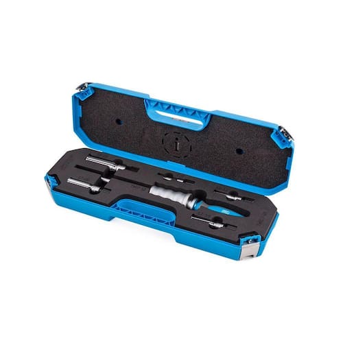 O Kit de Extrator de Rolamentos Interno SKF TMIP 7-28 foi projetado para desmontar rolamentos de caixas de mancal, em que o encaixe está no anel externo. O extrator é construído para força ótima e durabilidade e são incluídos vários extratores para suportar uma ampla variedade de diâmetros do furo dos rolamentos. Um martelo deslizante permite que forças de alto impacto sejam aplicadas e foi ergonomicamente projetado para reforçar a segurança do usuário. O conjunto possui um design patenteado da SKF com extratores carregados por mola para facilitar e agilizar os trabalhos de desmontagem.