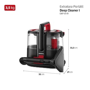 A Extratora e Higienizadora Portátil Mondial EXP-01-R é ideal para quem busca limpeza profunda e praticidade em diversos ambientes. Com 3 funções (borrifar, esfregar e extrair), ela atua em estofados, carpetes, bancos de automóveis, colchões e muito mais. Leve, com mangueira de 2 m e cabo de 5,5 m, permite alcance amplo sem maiores esforços.