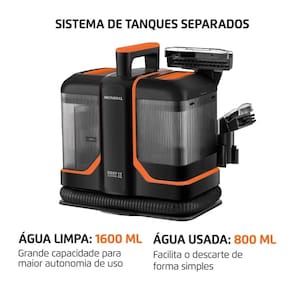 Potência de 1.800W: Com grande poder de sucção, a extratora portátil Mondial proporciona uma limpeza profunda e eficiente, removendo a sujeira com facilidade.