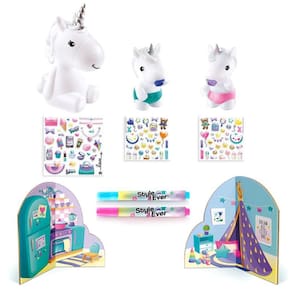 Decore Sua Luminária Família de Unicórnios - Fun Divirta-se A Decore Sua Luminária Família de Unicórnios da Fun Divirta-se é mais do que uma simples luminária, é uma experiência de personalização e criatividade para as crianças. Com adesivos, canetas e acessórios inclusos, este kit DIY permite que os pequenos decorem e iluminem seus próprios unicórnios, criando um ambiente encantador e colorido no quarto. A mágica acontece com um unicórnio principal, dois bebês, dois cenários decorativos, mais de 100 adesivos e duas canetas, tudo projetado para soltar a imaginação e deixar a decoração ainda mais especial. Ideal para crianças a partir de 6 anos, esta luminária é o centro das atenções em quartos, salas de estar e espaços de lazer.