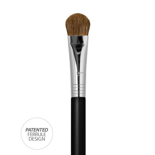 Pincel de cerdas naturais tamanho médio, para aplicação de iluminador e sombras em pó. Pelos naturais de cabra DAYTECH Soft Hair, cabo de madeira com ponteira em cobre prata.