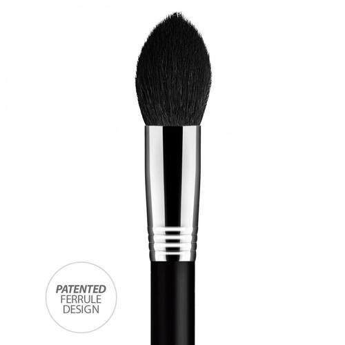 O Pincel Profissional F25 Daymakeup possui altíssima qualidade. Seu formato é um dos melhores para contornar o rosto e aplicar pó na zona T. É mais comprido e fino que um pincel de pó normal. Também pode ser usado para aplicar Blush e iluminar áreas maiores do rosto. Aplicar pouco produto na pontinha do nariz e esfumar bastante. Aplicação precisa! Suas cerdas naturais de cabra proporcionam um acabamento impecável a maquiagem. Cabo de madeira. Tamanho grande.