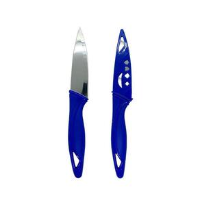 Faca 3 Capa Proteção Legumes Frutas Cozinha Bolsa Viagem A altíssima qualidade das lâmina com peças que priorizam a leveza na hora de servir e comer. É a companhia perfeita para cozinheiros de cardápios básicos que desejam ter uma faca coringa e que não deixa na mão.A faca para legumes possui o cabo grande e lâmina pequena, oferece segurança e precisão para descascar, cortar e decorar frutas e legumes com maior agilidade. Possui: Faca com cabo e Protetor de plástico para a lamina