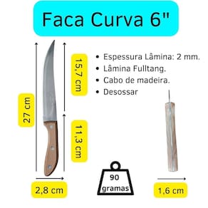 Faca inox curva para cozinha ideal para corte de carnes, legumes e frutas.
