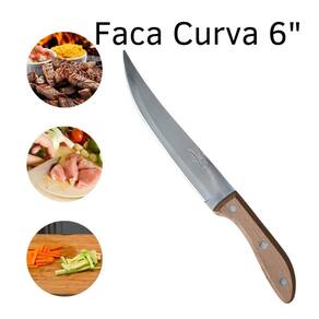 Faca 6 Curva Cabo Madeira Cozinha Corte Desossar Carne Peixe