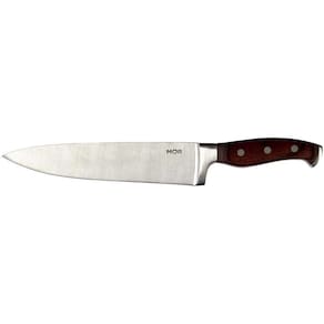 Descrição A Faca 9 da linha Steel da Mor tem design sofisticado e atraente. Com cabo em madeira tratada e lâmina afiada em aço inoxidável, é leve, resistente e de fácil manuseio, perfeita para auxiliar nas tarefas da cozinha. Elegância e bom gosto embalado em uma caixa colorida e bem trabalhada, sendo uma excelente opção para presente. Especificações MATERIAL Madeira OBSERVAÇÕES Os objetos que ambientam as imagens não acompanham o produto!