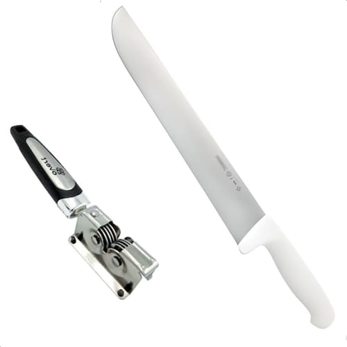 Itens inclusos: 1 Faca Açougueiro Cozinha Multiuso Mundial 12” Master Line 1 Afiador de Facas Overt