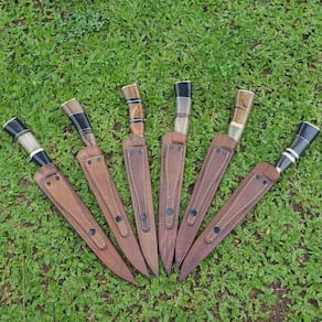 Faca tradicional gaúcha feita de forma artesanal, indispensável para seu churrasco. Possui lâmina em aço carbono 1070 com têmpera de excelente qualidade, propiciando para a faca maior resistência mecânica e durabilidade de fio.