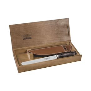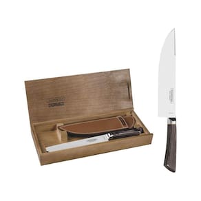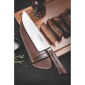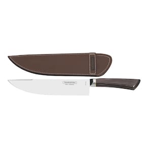Faca Tramontina para Carne 8" Campeira em Aço Inox Forjado Cabo Castanho Polywood com Bainha de Couro e Estojo de Madeira A lâmina de aço inox forjado têm maior durabilidade do fio devido ao tratamento térmico. O cabo de madeira tratada Polywood são resistentes à impactos e alta temperaturas garantindo maior resistência e durabilidade. A bainha em couro que oferece uma proteção ao fio da faca, permitindo o transporte e armazenagem com maior segurança. Estojo de madeira que oferece uma proteção as peças, permitindo o transporte e armazenagem com maior segurança. Podem ir à máquina de lavar louças facilitando seu dia a dia. Recomendações de uso Antes da primeira utilização, llave bem as peças e seque-as. Produtos cortantes e perfurantes: tenha cuidado ao manusear e mantenha fora do alcance das crianças.Para maior durabilidade dos produtos recomenda-se secar bem antes de guardar, mesmo após lavagem em máquina. Para descarte dos produtos e embalagens siga as orientações de reciclagem vigentes.