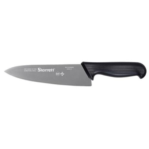 Faca para Carne Lâmina Triangular Larga 20cm Preta Starrett BKB301-8Características:-lâminas em aço inoxidável-cabos ergonômicos e injetados em polipropileno que propicia melhor conforto-acabamento polido da lâmina-identificação com gravação a laser no corpo da lâmina-liga de aço especial, com alta dureza proporcionando maior vida útil.-certificação NSFVantagens:-alto índice de durabilidade.-proteção antimicrobiana Sanitized nos cabos (evita proliferação de bactérias).-maior segurança.-garantia de procedência e rastreabilidade.-não mancha e não oxida.-ângulo exclusivo de afiação permitindo cortes com mais impacto.Código: BKB301-8Imagem meramente ilustrativa.