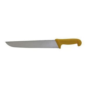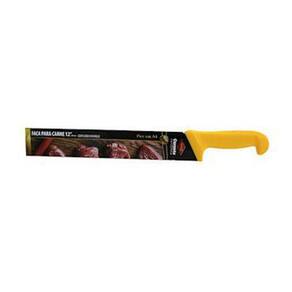 Faca carne 12 cabo amarelo premium - dimensões da peça: 44,5 x 5,8 x 3cm - dimensões da embalagem: 45 x 5,8 x 3cm - material: aço inox e pp - cor: Cabo: amarelo Lâmina: prata - tipo de embalagem: bainha - marca: corneta cutelaria - origem: fabricado na china sob supervisão técnica corneta do brasil. - espessura: 3mm - lâmina: 12 30,5cm - indicação: Indicada para cortar e fatiar carnes, verduras e legumes. - características: Lâmina de 3mm de espessura estampada em aço inoxidável recebendo tratamento térmico total. Cabo anatômico em polipropileno virgem. - atenção: Cuidados ao manusear produtos cortantes e perfurantes. Guardar em local seguro. Guardar estas instruções para futuras consultas. Manter fora do alcance das crianças. - material: aço inox e pp - cor: Cabo: amarelo Lâmina: prata - marca: corneta cutelaria Ean: 7896980412727