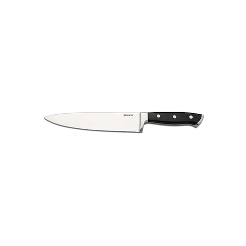 Facas sofisticadas, precisas e com excelente balanço. A linha Infinity é para quem entende que um bom corte significa tudo na hora de preparar sua refeição. Possui lâminas em aço inoxidável temperadas, proporcionando maior durabilidade para o fio. Na espiga da lâmina em aço inoxidável maciço é injetado o ABS, o que garante mais estabilidade. Possuem também, proteção para os dedos e rebites, ambos em aço inoxidável, proporcionando cortes perfeitos. A faca Chef possui lâmina forte e larga Lâmina forte e larga, preparada para descascar, cortar e picar todos os tipos de alimentos. Nesta linha, a faca Chef possui 8 polegadas e medidas: 33,5 x 4,6 x 1,9 cm. Marca: Brinox Composição: 01 Faca Chef Infinity Linha: Infinity Material: Aço Inox